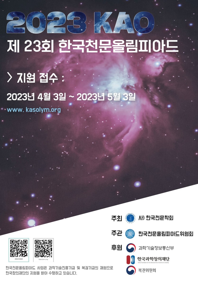 천문 영재들을 조기에 발굴 ․ 교육하여 미래 천문학자로 성장할 수 있도록 제23회 한국천문올림피아드를 개최합니다.