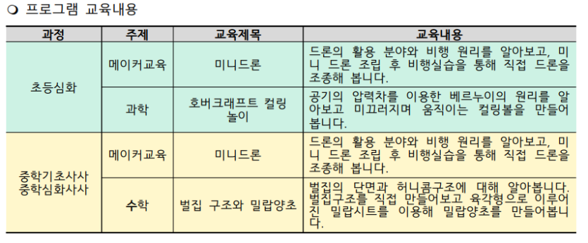 - 대상: 경북대학교 과학영재교육원 초등심화과정 및 중학기초·심화사사과정 재학생