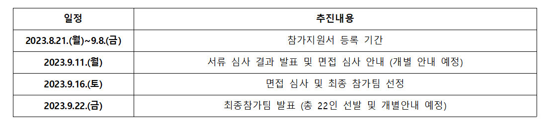○ 지원 일정 : 23.08.21(월) ~ 23.09.08.(금)