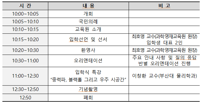 < 경북대학교 과학영재교육원 2024학년도 입학식 안내 >