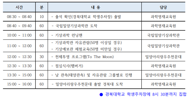 다. 장소: 국립밀양기상과학관, 밀양아리랑우주천문대