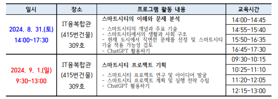- 준비물: 필기구, 개인이 마실 물 및 간식 등 개인 필요 물품