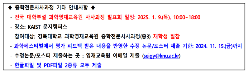 문의) 과학영재교육원 053-950-6423, 6425, seigy@knu.ac.kr