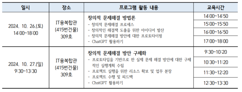 - 교육명: 2024학년도 특별프로그램[창의적 문제해결 인재양성]