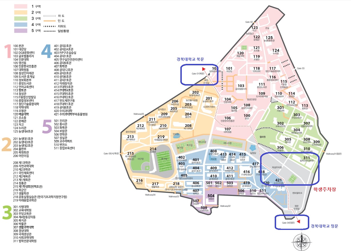 - 경북대학교 학생주차장 위치는 첨부파일 또는 캠퍼스 지도 확인하기(클릭)을 참고하세요.