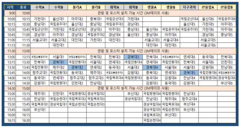 나. 포스터 설치 및 발표 예정시간( 경북대-11:30~14:00 )