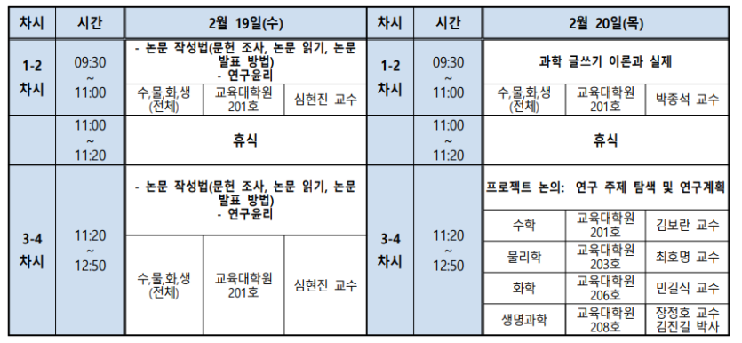 2. 장소: 교육대학권(302번 건물) 201호 등