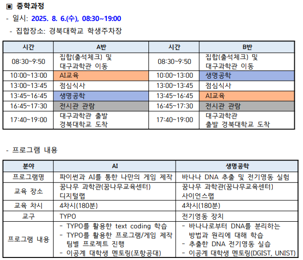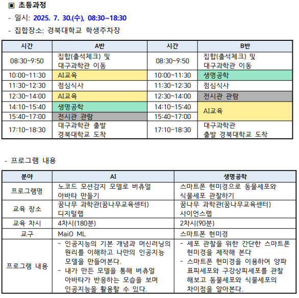 - 대상: 2025학년도 경북대학교 과학영재교육원 교육생