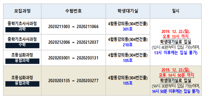 <<2020학년도 신입생 신규선발 초등심화과정(현재 초5), 중학기초사사과정(현재 초6) - 3단계 평가 안내>>