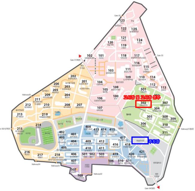 - 중학기초사사과정: 교육대학원(302번 건물) ▶ 고사장 지도 바로가기(클릭)
