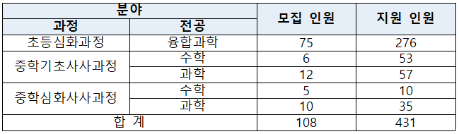 1. 2025학년도 경북대학교 과학영재교육원 신입생 선발 지원 인원